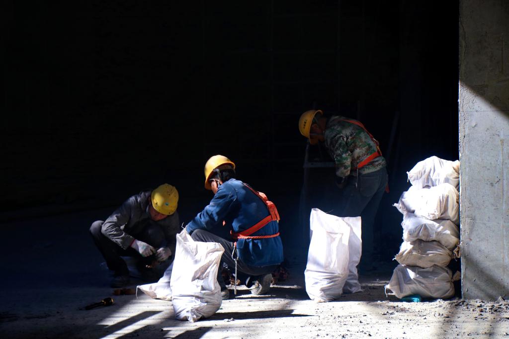 风雪中的建设者