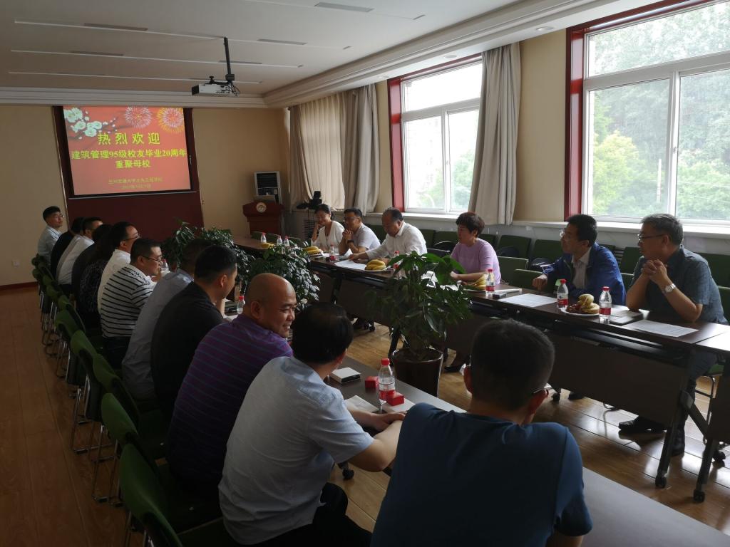 羁鸟恋旧林,池鱼思故渊。5月25日,建管95级校友从祖国四面八方重聚母校,隆重的举行了毕业20周年同学聚会。我校副校长刘振奎老师出席了此次聚会,参加此次聚会活动的还有土木工程学院党委书记李爱春,副院长鲍学英,以及授课老师马维珍、赵延龙、靳文强、霍曼琳等人。