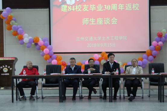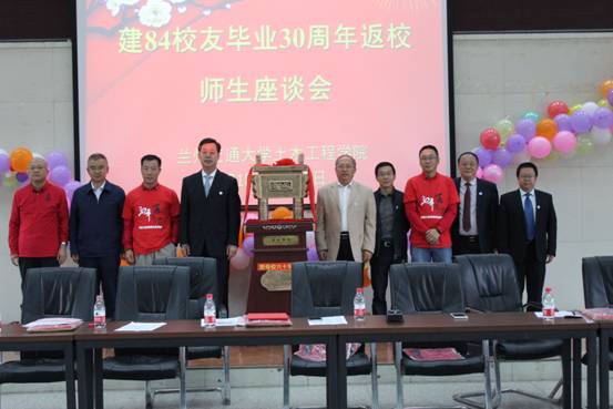 9月15日下午,为庆祝兰州交通大学甲子华诞,兰州交通大学建84校友毕业30周年返校,与在校老师举行座谈会。兰州交通大学马军党副校长,建90校友天水市常务副市长赵四辈,建84班主任、继续教育学院雷智仕院长,土木工程学院虞庐松院长、李爱春书记、王旭副院长、梁庆国副院长等参加,座谈会由建84校友贡力新主持。