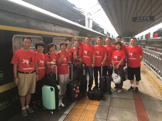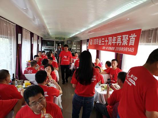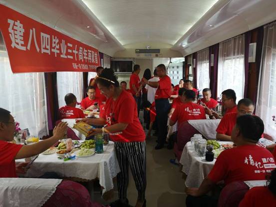 为怀念往昔上学时光,建84校友共乘火车返回母校。在车厢上他们话家常、聊回忆,兴奋之情溢于言表。
