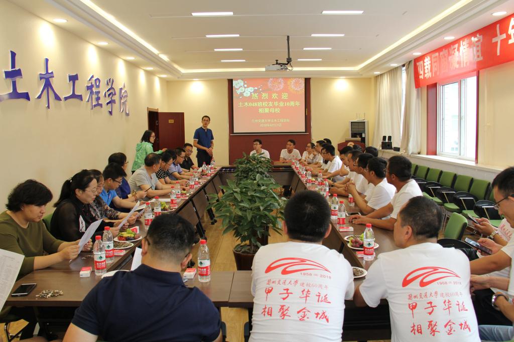 正值兰州交通大学60周年校庆到来之际,土木工程学院土木041班、土木042班、土木048班、水利041班,共126名校友,从海内外多个岗位重返母校,重温师生情谊,追忆同窗旧事,畅谈人生感悟。6月17日于三号实验楼土木多功能厅等多个会场举行了师生座谈会。土木工程学院院长虞庐松、院党委副书记/副院长周涛、副院长王旭、国家级土木工程实验教学示范中心常务副主任梁庆国,学院校友办,班主任及多名任课教师参与了此次座谈会,并与校友进行了亲切的交流。