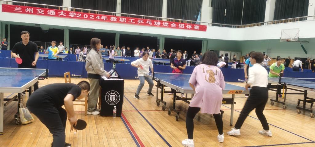 4月18日,兰州交通大学2024年教职工乒乓球混合团体赛在天佑体育馆迎来最后一个比赛日,伴随着各个机关、学院代表队紧张激烈的角逐,为期4天的比赛圆满收官,最终,土木学院乒乓球混合团体代表队继2023年摘得桂冠后再度蝉联2024年冠军。