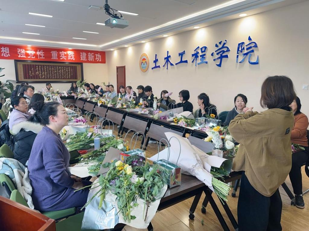 2月29日,在国际劳动妇女节即将到来之际,土木工程学院悄然书写起“焕春”的诗篇,以各色鲜丽清香的鲜花为载体,精心策划了一场别开生面的妇女节花艺学习活动,让每一位女教师在忙碌的教学和科研之余,感受到节日的温暖和欢乐。