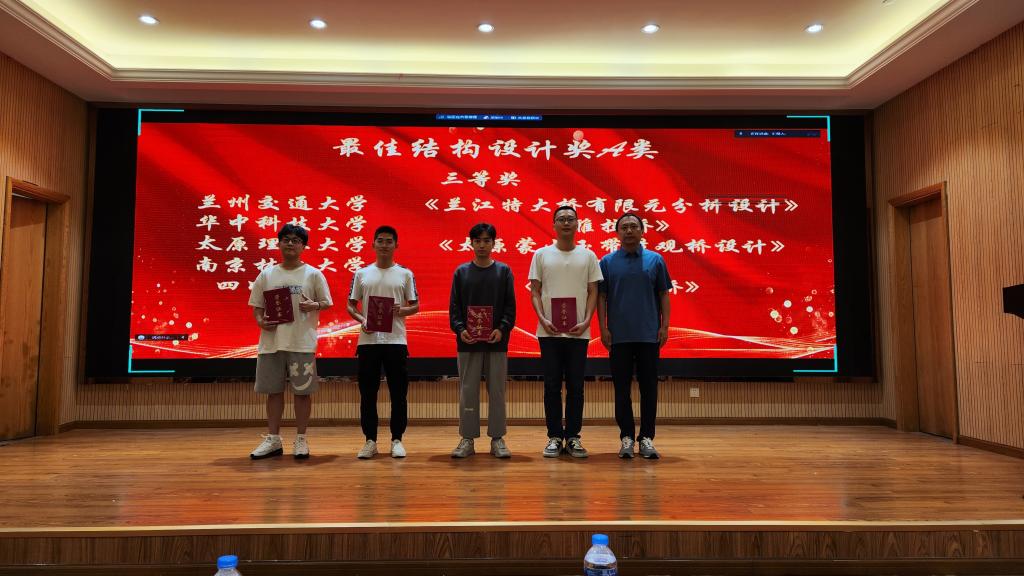 比赛中,评委们对于来自兰州交通大学土木工程学院的三个参赛作品,包括拱桥、矮塔斜拉桥结构设计和矮塔斜拉桥BIM设计,作出了详细评价。这三项作品均受到了评审团与其余参赛团队的肯定,三个参赛团队也在最终的获奖环节中取得了佳绩。