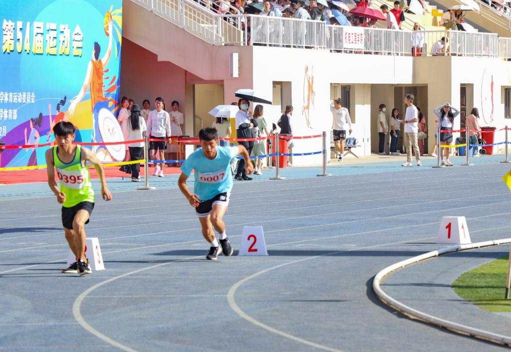 青春赛场,绽放激情。同学在赛场上发扬更快、更高、更强、更团结的奥林匹克精神,挥洒汗水,奋勇争先,将青春的剪影镌刻在跑道上、镌刻在赛场中。