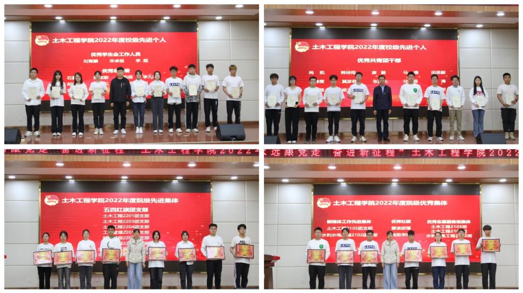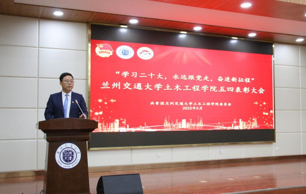 会上,校团委副书记曹铎作了致辞,肯定了本年度学院团学工作情况,代表校团委对学院团干部和全体共青团员表示诚挚的问候,向受表彰的个人和集体表示了热烈的祝贺。他向我院广大团员青年提出殷切希望,希望团员青年用远大理想引领人生航向,用高尚品德巩固立身之本,用过硬本领创造精彩人生;希望土木学子树立与这个时代主题同心同向的人生目标,做勇担民族复兴大任的时代新人,积极投入中国特色社会主义伟大事业,让“爱国、进步、民主、科学”的五四精神焕发更加夺目的时代光芒,让“尚德 励志 博学 笃行”的校训精神始终激励同学们踔厉奋发、勇毅前行。