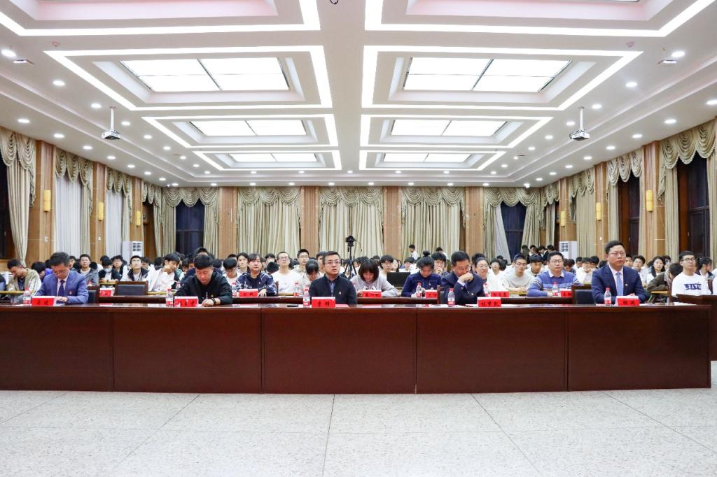 大会在学校第二教学楼报告厅举行,设置表彰大会现场直播,土木校友、家长等共计1000多人线上观看。表彰大会在庄严肃穆的国歌声中拉开序幕。