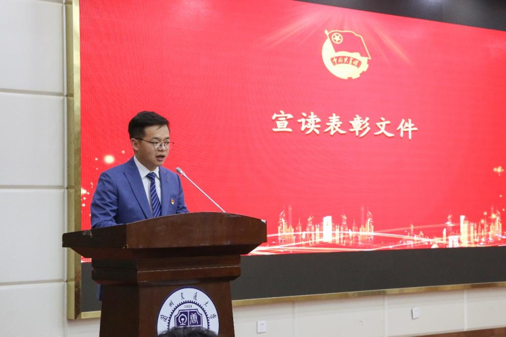 学工办负责人马俊老师宣读了表彰文件。参会领导与老师分别对本年度共青团系统院级、校级先进集体和优秀个人进行了颁奖。会上,学院党委副书记副院长林梦凯为2020级团学组织主席团成员颁发了聘书。