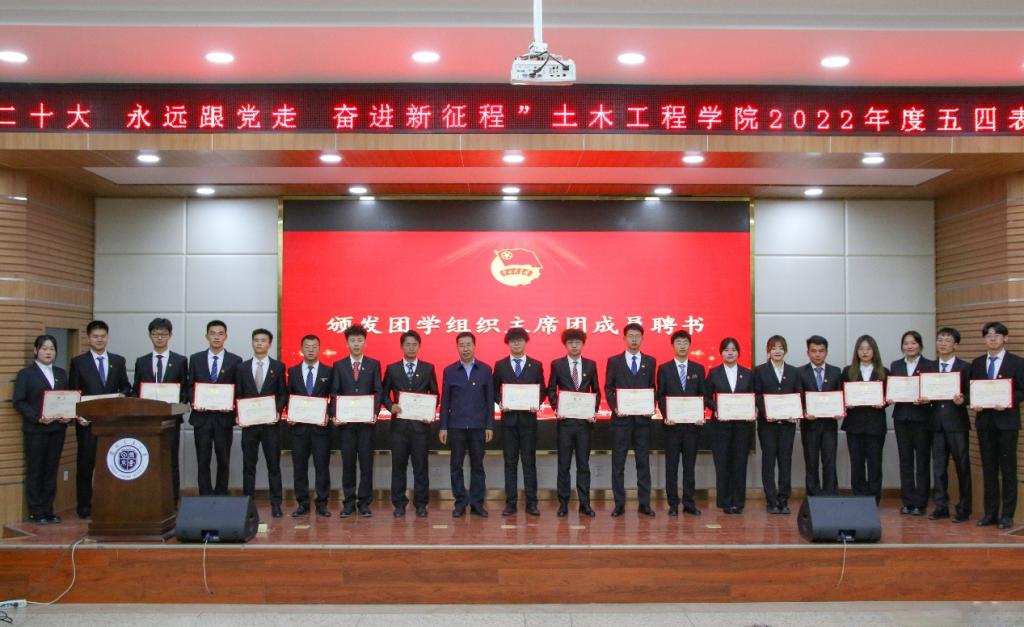 为深入学习二十大精神,学习贯彻习近平新时代中国特色社会主义思想主题教育及省委“三抓三促”行动安排,纪念五四运动、铭记光辉历史、传承红色基因,发挥先进典型示范作用,激励团员青年立大志、明大德、成大才、担大任,努力成为堪当民族复兴重任的时代新人。5月8日,土木工程学院举办“学习二十大,永远跟党走,奋进新征程”五四表彰大会。学校团委副书记曹铎、学院党委副书记副院长林梦凯、党委组织员冯玉才、团委书记胡渊、全体辅导员老师出席了会议。会议由学院团委书记胡渊主持。