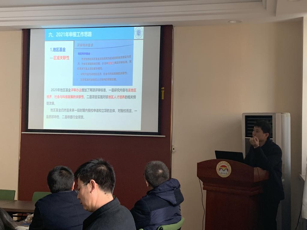 学院先邀请科技处副处长高全福老师先做了关于2021年度国家自然科学基金申请的专题报告,高老师从国家基金近几年的受理和资助情况、政策变化、申报过程注意事项等方面做了详细讲解。随后几位成果突出、已主持多项自然基金和重大科技项目的青年博导冀伟教授、李盛教授、蔺鹏臻教授、张戎令教授、张永亮教授等,重点就国家自然科学基金申报过程中的科学问题思考与提炼、申请书撰写申报与经验总结、项目研究执行与成果凝练发表、科技奖项的规划布局等,分别分享个人的体会、技巧和经验。学院30余名教师参与交流。