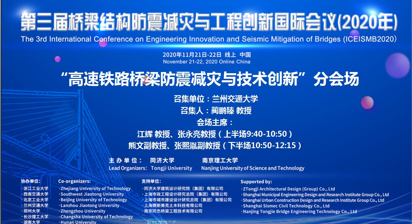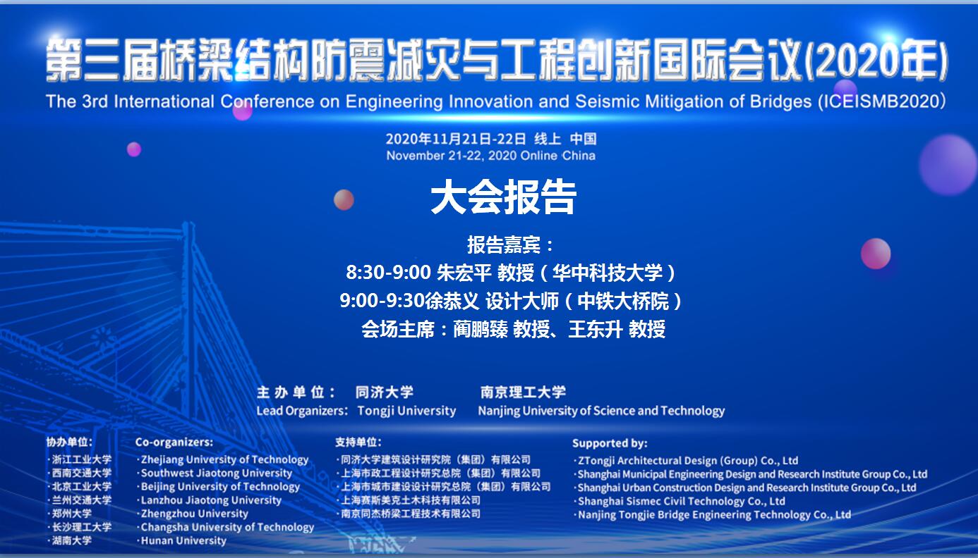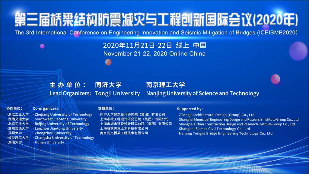 2020年11月21-22日,第三届桥梁结构防震减灾与工程创新国际会议(线上)顺利召开,会议由同济大学、南京理工大学主办,我校与浙江工业大学、西南交通大学、北京工业大学、郑州大学、长沙理工大学和湖南大学联合协办。