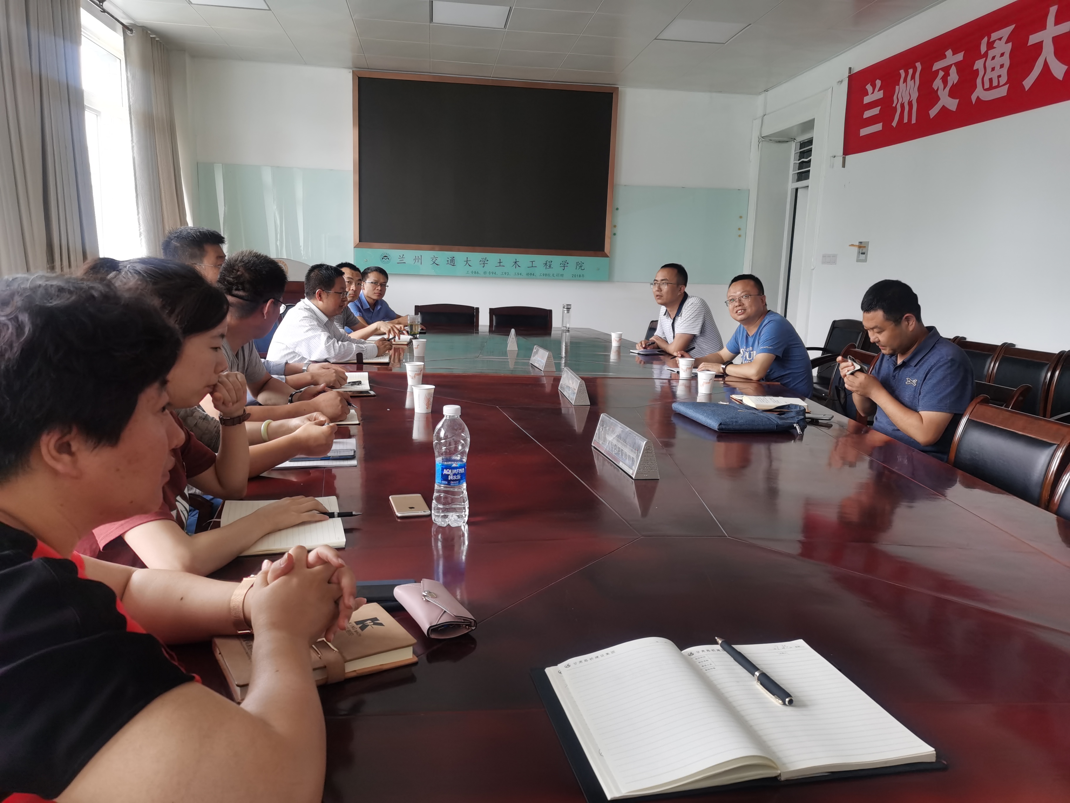 道桥工程系道路工程学科组的老师介绍了兰州交通大学在固废循环利用、道路工程材料性能监测、交通新材料研发、路面设计理论、路面养护决策等方向开展的工作,李盛、张戎令教授分别介绍了学院在高填土涵洞、混凝土耐久性方面取得的成果。支鹏飞所长介绍了省交科集团在公路交通领域的业务开展,交大毕业生在企业的表现,科学研究等内容。双方商定未来将在公路路基路面技术,交通新材料等科研领域加强交流与合作。