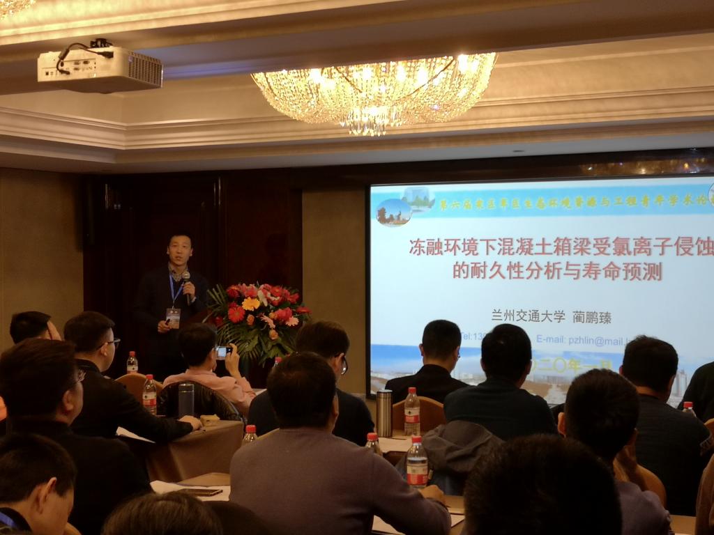 我院学科负责人蔺鹏臻教授、道桥系张熙胤副教授、高建强老师及部分研究生代表应邀参加了本次论坛。蔺鹏臻教授做了题为“冻融环境下混凝土箱梁受氯离子侵蚀的耐久性分析与寿命预测”的资源工程专题特邀报告并主持了资源工程分会场部分专题报告,张熙胤副教授做了“土体冻融对桥梁桩基础抗震性能的影响研究”专题报告。