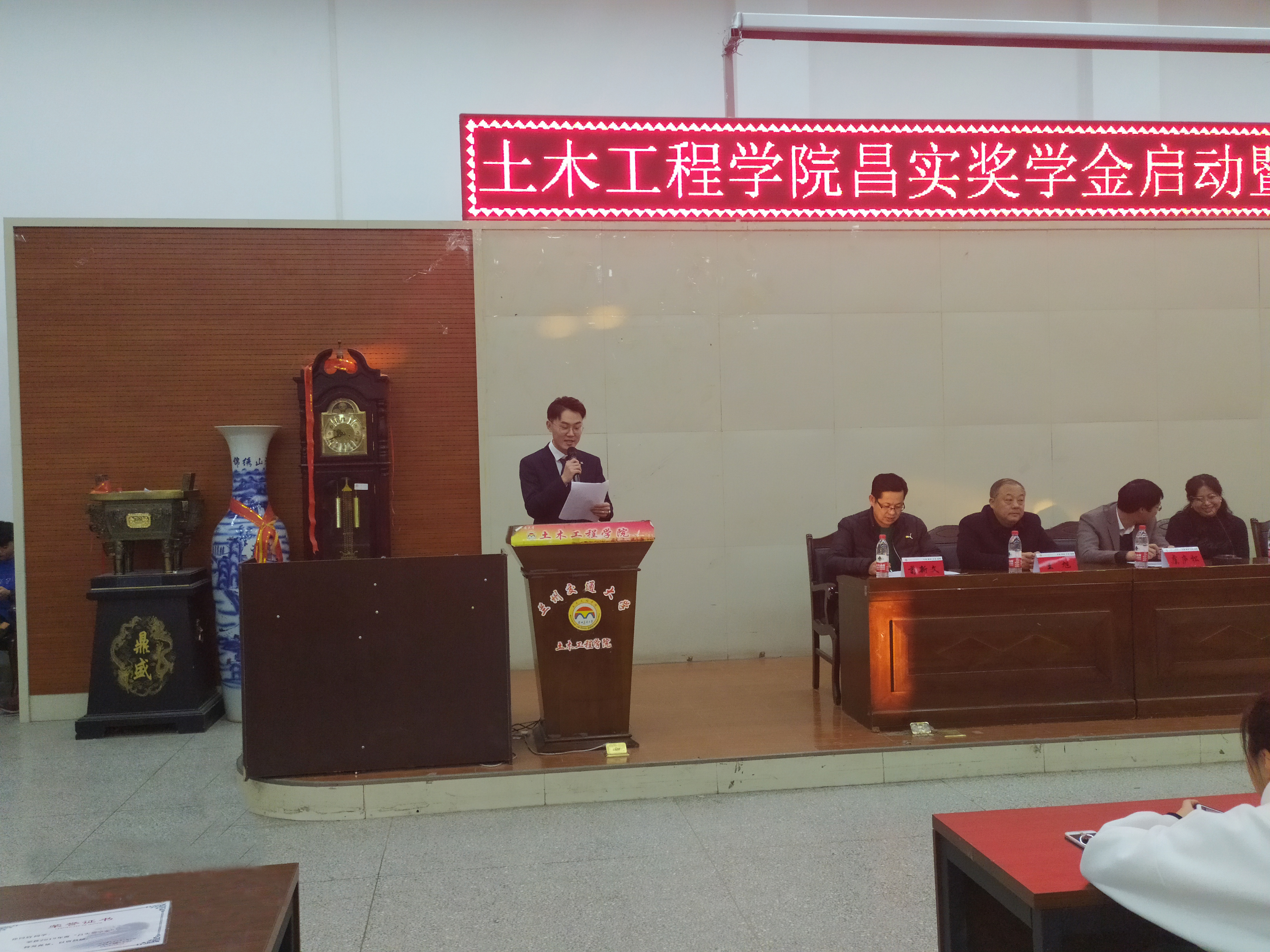 12月11日下午5:00,土木工程学院在三号实验楼5楼多功能厅举行了昌实奖学金启动暨颁奖仪式。潘昌实教授亲属代表罗宁女士、