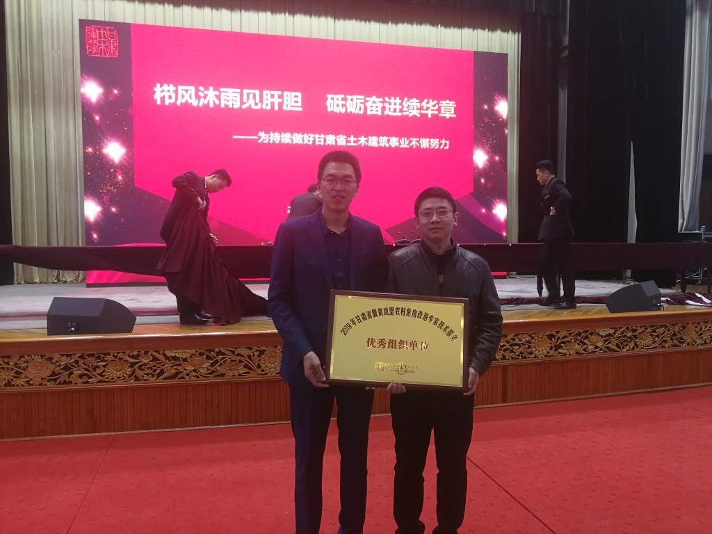 甘肃省住房和城乡建设厅党组书记、厅长苏海明对本次甘肃省脱贫攻坚农村危房改造技术服务工作取得的成果表示了充分肯定。甘肃省土木建筑学会理事长任春峰宣读了对参加本次全省农村危房改造技术服务的单位和个人的表彰决定。我校获“2019年甘肃省脱贫攻坚农村危房改造专家技术服务”优秀组织单位表彰,我校教师蔺鹏臻、蒋代军、冀伟、孙永新、赵建昌、窦觉勇荣获“2019年甘肃省脱贫攻坚农村危房改造专家技术服务”个人表彰。