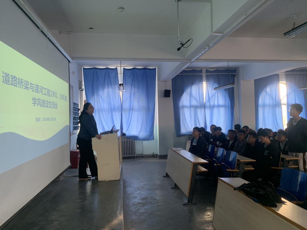 2019年11月16日,土木工程学院道桥工程系在7教1401教室举行道路桥梁与渡河工程专业1901、1902班学风建设交流会。道桥工程系宁贵霞教授、李波教授出席会议。