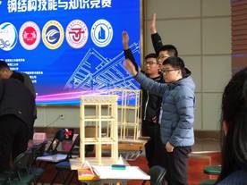 此次比赛以装配式钢结构为背景,旨在培养大学生创新思维和实践动手能力,提高团队合作精神,促进省内各高校间交流,鼓励大学生踊跃参加课外科技竞赛活动。比赛三人一组, 分为模型组装和技能与知识竞赛两个阶段。在知识竞赛环节,我校两队同学沉着应对,积极应答,成绩一路领先;在模型讲解环节,同学们条理清晰的阐述了参赛模型中应用的钢结构知识.