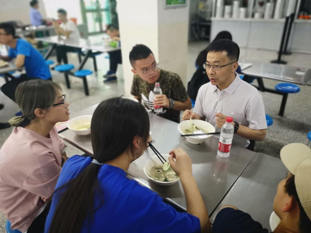 在百苑餐厅学生食堂,李爱春书记了解了食堂饭菜种类、卫生情况,与铁道1803班同学共进晚餐。李书记说同学们和他自己的孩子差不多大,他以父辈的角度和同学们交谈,和蔼可亲的态度,迅速拉近彼此距离,同学们敞开心扉,对自己遇到的困惑,积极向李书记请教。李书记谈到“一粥一饭当思来之不易,半丝半缕恒念物力维艰”,希望同学们不要浪费;大多数同学上大学背井离乡,要记得时常给父母打个电话,报个平安、汇报近况、谈谈心事。晚饭在很融洽的交谈氛围中结束,李书记告诉同学们他办公的地方,嘱咐同学们可以随时去找他交流。