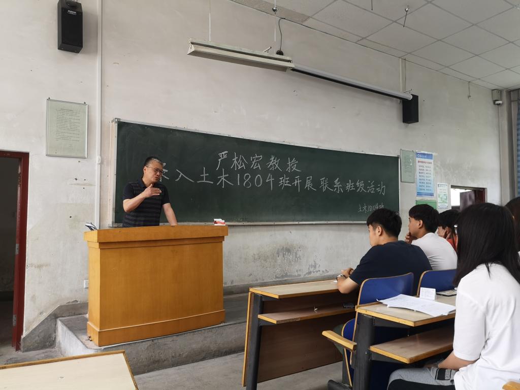 严松宏馆长结合自身的学生生涯和工作经历,给土木1804班学生几点建议,在校期间要培养自主学习的能力,增强专业素养;要养成良好的生活习惯;要培养与人沟通交往的能力;要明辨是非;要吃苦耐劳。授课后,同学们积极提问,与严馆长进行了热烈交流。