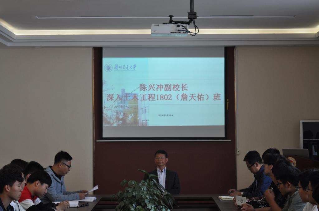 为深入学习贯彻习近平新时代中国特色社会主义思想,认真贯彻落实全国教育大会、全国高校思想政治工作会议精神,根据学校领导干部深入基层联系学生制度的相关安排,5月15日下午,副校长陈兴冲深入联系班级--土木工程1802(詹天佑)班,给土木学子讲授思政课,课程内容外连中外局势,内涉校园生活,思政课堂气氛活跃,现场掌声频频。