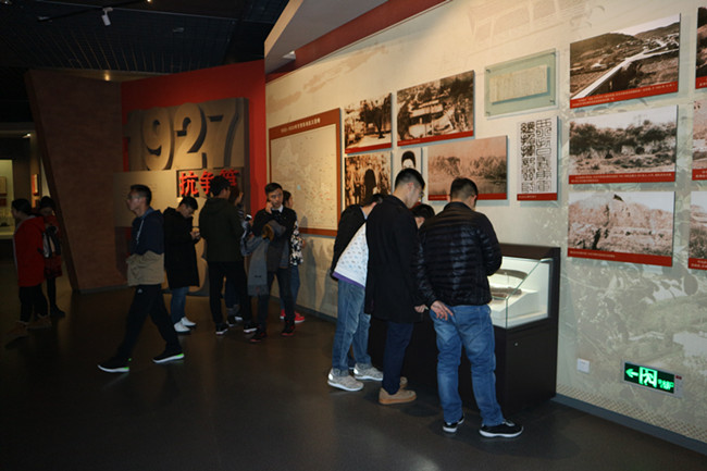 参加的共计研究生党总支十个支部,160余名党员,在甘肃省博物馆门口集合后,进行合影留念。进入省博《红色甘肃》的分馆面前,看着党旗和旁边的入党誓词,同学们入党时在党旗前宣誓的场景历历在目,一个个冲锋向前的战士则向我们叙述着当年红色甘肃的峥嵘岁月。在馆内通过火种篇、抗争篇、铁流篇、激荡篇、曙光篇五个篇章,展现了甘肃特支的成立、南梁烽火的燃起、陕甘根据地的创建、红军长征胜利会师、西路军鏖战河西以及甘肃各族人民在中国共产党的领导下进一步步实现中华民族由衰败走向复兴的伟大历史画卷。
