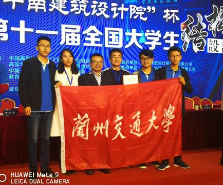 10月18—22日,“中南建筑设计院”杯第十一届全国大学生结构设计竞赛在武汉大学举行,此次赛题为“渡槽支承系统结构设计与制作”。来自清华大学、浙江大学、上海交通大学、兰州交通大学等共计107所高校的108支代表队同台竞技。由我校2015级土木工程专业余史文、杨彦斌、张晨宇同学组成的代表队以甘肃省赛第一名的成绩代表甘肃省参赛,在张家玮和刘廷滨老师的指导下完成的作品“九曲安澜”,以重量139.9g、载入水量50.92kg、损失0.94kg、总分76.33分,在全国高校队伍中脱颖而出,获得全国二等奖的优异成绩。