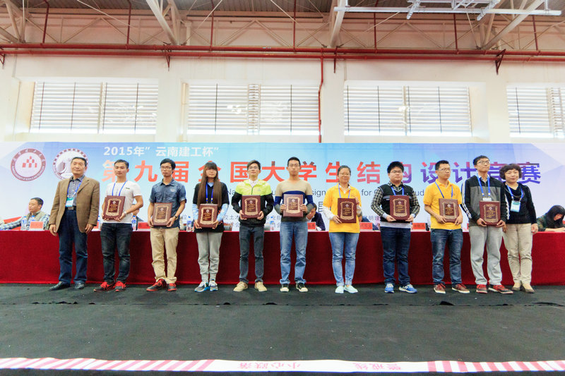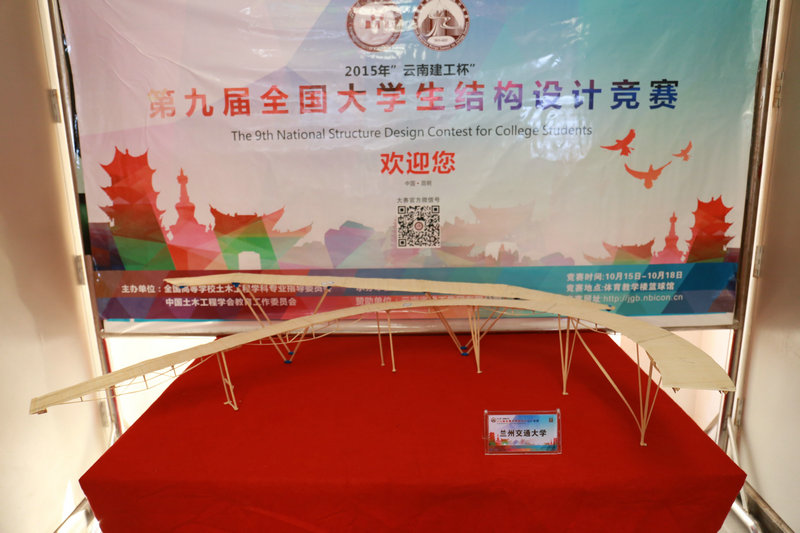10月16日至19日,第九届全国大学生结构设计竞赛在昆明理工大学进行,来自全国包括清华大学、上海交通大学在内的109所高校,110支参赛队伍,近千余名师生参加此项竞赛。我校土木工程学院郭健、夏文传老师指导的土木工程专业学生石鹏儿、柴尚云、鲍日辉同学完成的作品“九曲观澜桥”获得本次竞赛的三等奖。