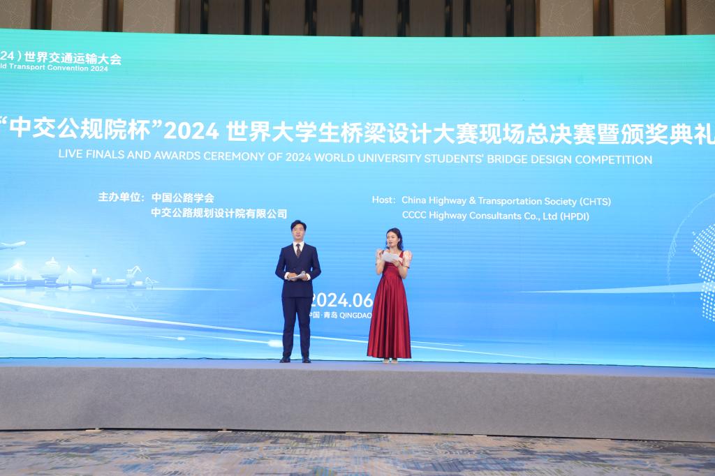 6月29日,中交公规院杯”2024世界大学生桥梁设计大赛现场总决赛暨颁奖典礼在青岛世界博览城举办。本届大赛吸引了来自浙江大学、大连理工大学、北京交通大学、长安大学、西南交通大学等全国30多所高校的1100多名全日制在读博士、硕士、本科学生及柬埔寨、尼日利亚等国家的留学生参赛。我院张熙胤副院长、指导教师王力副教授、吴朝阳老师及9名我院本科同学参加现场总决赛。