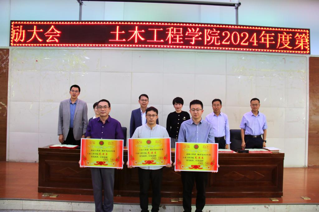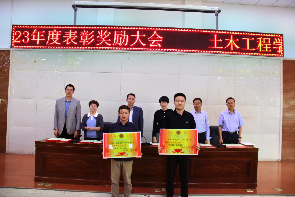 会上,虞庐松院长对2023年的工作进行了总结并予以充分肯定。王娜书记、鲍学英副院长和张熙胤副院长分别宣读了相关表彰奖励决定。道桥工程系、土木工程系、铁道工程系被评为先进系;院办、团委被评为管理工作先进集体;杜骞、段志东、黄佼佼、李海莲、宁贵霞、王保成、王丽娟、王云侠、张丽萍9位教师被评为教学工作先进个人。在2022年土木工程学院青年教师教学竞赛中,牛亚强荣获一等奖,汪精河、马驰荣获二等奖,张玉元、吴玉、黄佼佼、吴国铭荣获优秀奖。在土木工程学院第三届教师教学创新大赛中,侯小强荣获一等奖,牛亚强、王堃荣获二等奖,汪精河、冀伟、王利霞、张玉元荣获优秀奖。
