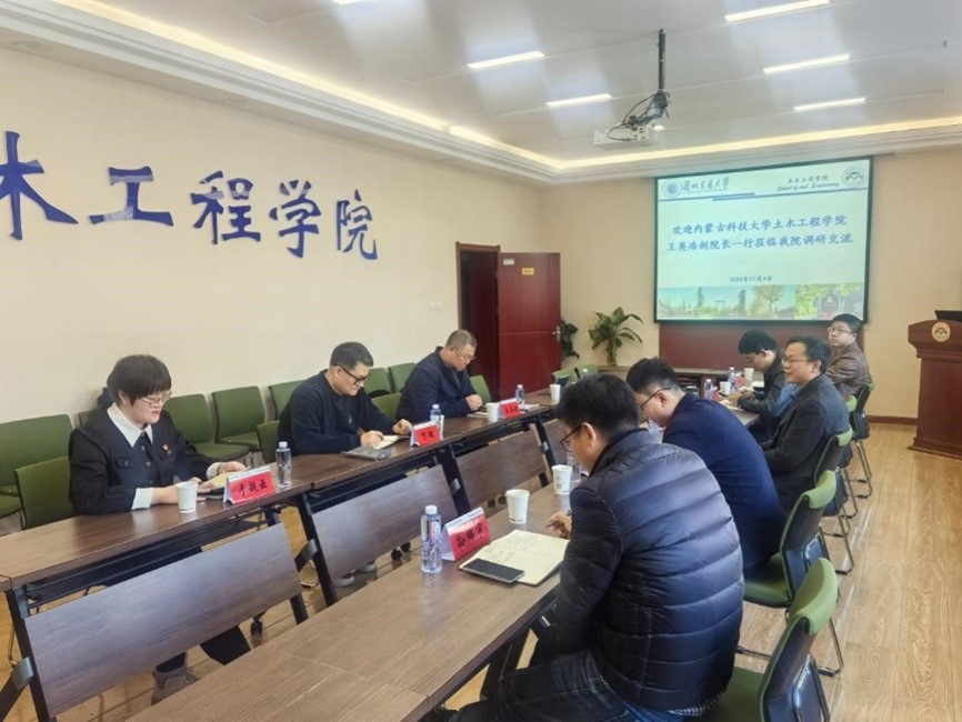 2024年11月4日,内蒙古科技大学土木工程学院(绿色基建产业学院)副院长王英浩一行人赴我院进行调研,我院张熙胤副院长及部分系、办公室主任参加了此次交流活动。