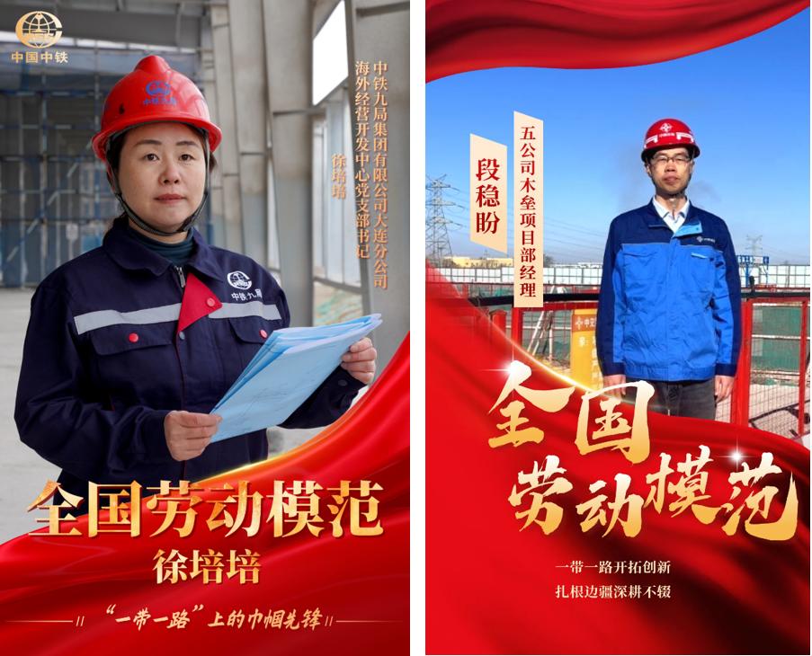 土木工程学院2005届校友、中铁九局大连分公司海外经营开发中心党支部书记徐培培,土木工程学院2007届校友、中交一航局五公司木垒项目部经理段稳盼,荣获全国劳动模范!