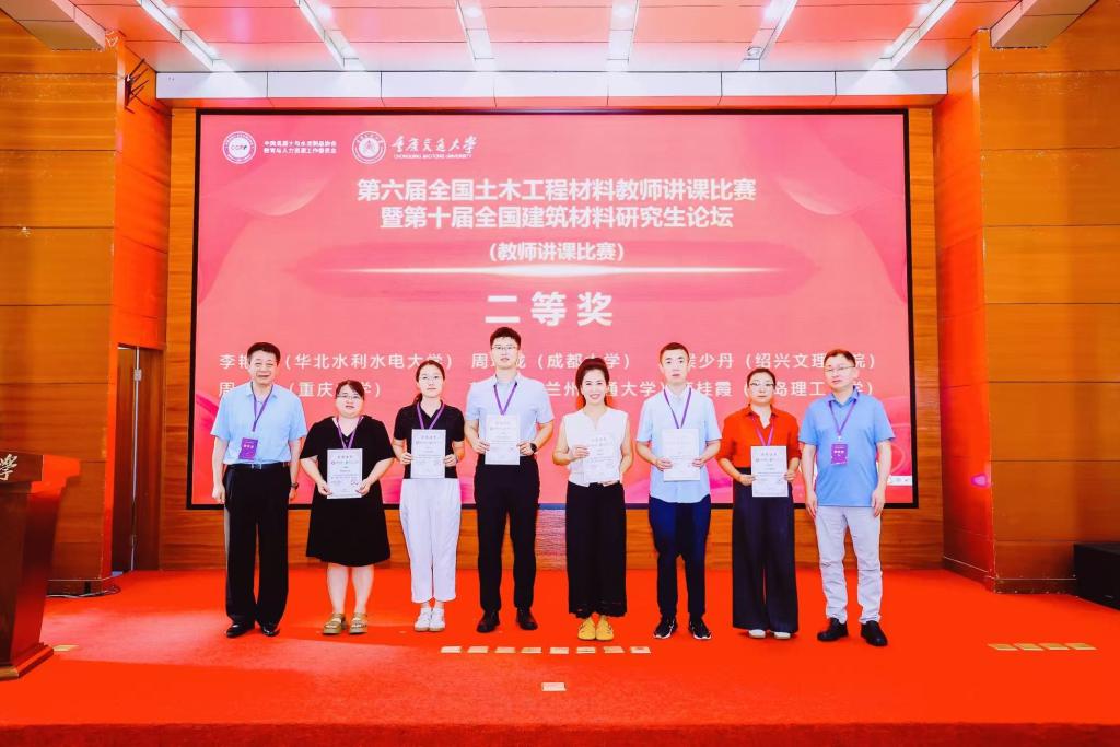 7 月 15 日至 17 日,第六届全国土木工程材料教师讲课比赛暨第十届全国建筑材料研究生论坛在重庆交通大学盛大举办。此次赛事汇聚了来自同济大学、东南大学、重庆大学、厦门大学等 51 所高校的 66 位教师展开同台竞技,我院教师郭月霞凭借扎实的教学功底与出色的授课表现,在激烈角逐中荣获二等奖。