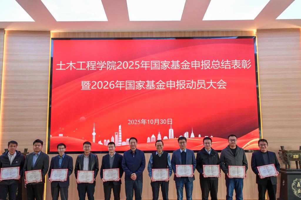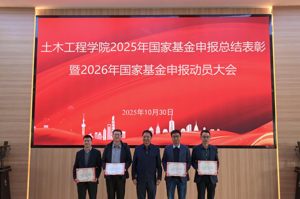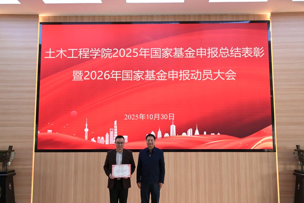 随后,学院党委书记王娜宣读了《关于2025年国家自然科学基金申报奖励的决定》,朱廷珺副校长为获奖集体及个人颁奖,道路工程系、土木工程系、铁道工程系、工程图学系荣获“先进系”,李波团队荣获“先进团队”,夏修身教授等19名教师荣获“先进个人”,王旭教授荣获“优秀指导奖”。