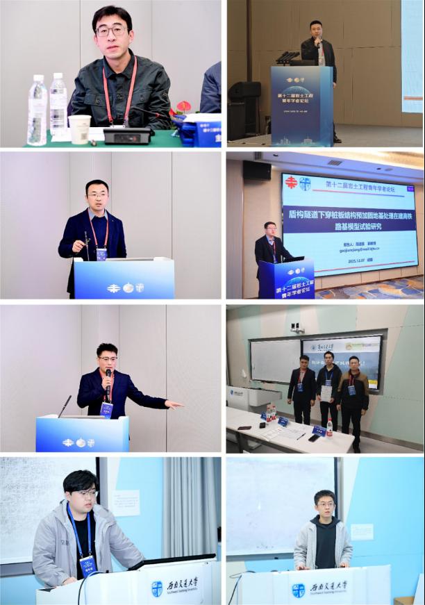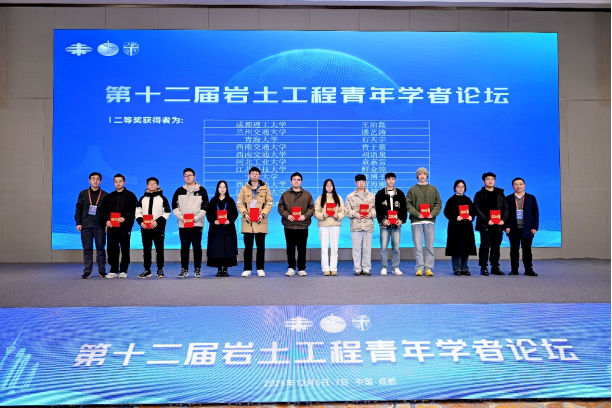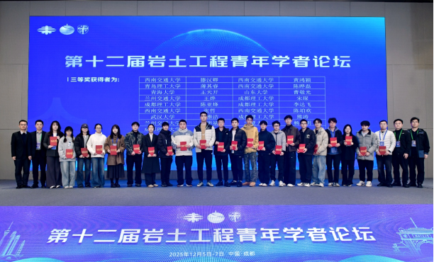 2025年12月5日—7日,第十二届岩土工程青年学者论坛在成都成功举办。本次会议以“极端环境岩土与地下工程”为主题,由中国土木工程学会土力学及岩土工程分会和西南交通大学联合主办,由极端环境岩土和隧道工程智能建养全国重点实验室(西南交通大学)、交通隧道工程教育部重点实验室、岩土及地下工程智能建造与安全学科创新引智基地、高速铁路线路工程教育部重点实验室、西南交通大学土木工程学院等多家单位共同承办。我院李盛教授、张延杰教授、牛亚强教授、高建强副教授、王庆栋讲师、赵亮亮讲师及三名研究生参加了此次会议。